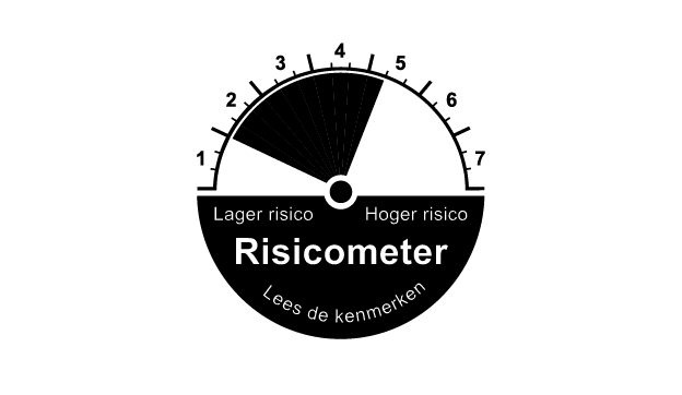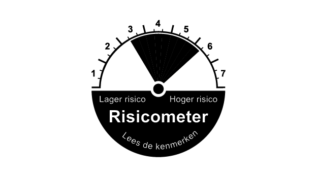 Bij elk risicoprofiel zie je een risicometer. De wijzers van de risicometer gaan van links naar rechts op een schaal van 1 tot 7, van laag naar hoog risico. Het zwarte vlak tussen de 2 wijzers geeft het minimale en het maximale risico aan. Deze meters helpen je om snel en eenvoudig risicoprofielen van verschillende banken en beleggingsinstellingen met elkaar te vergelijken.